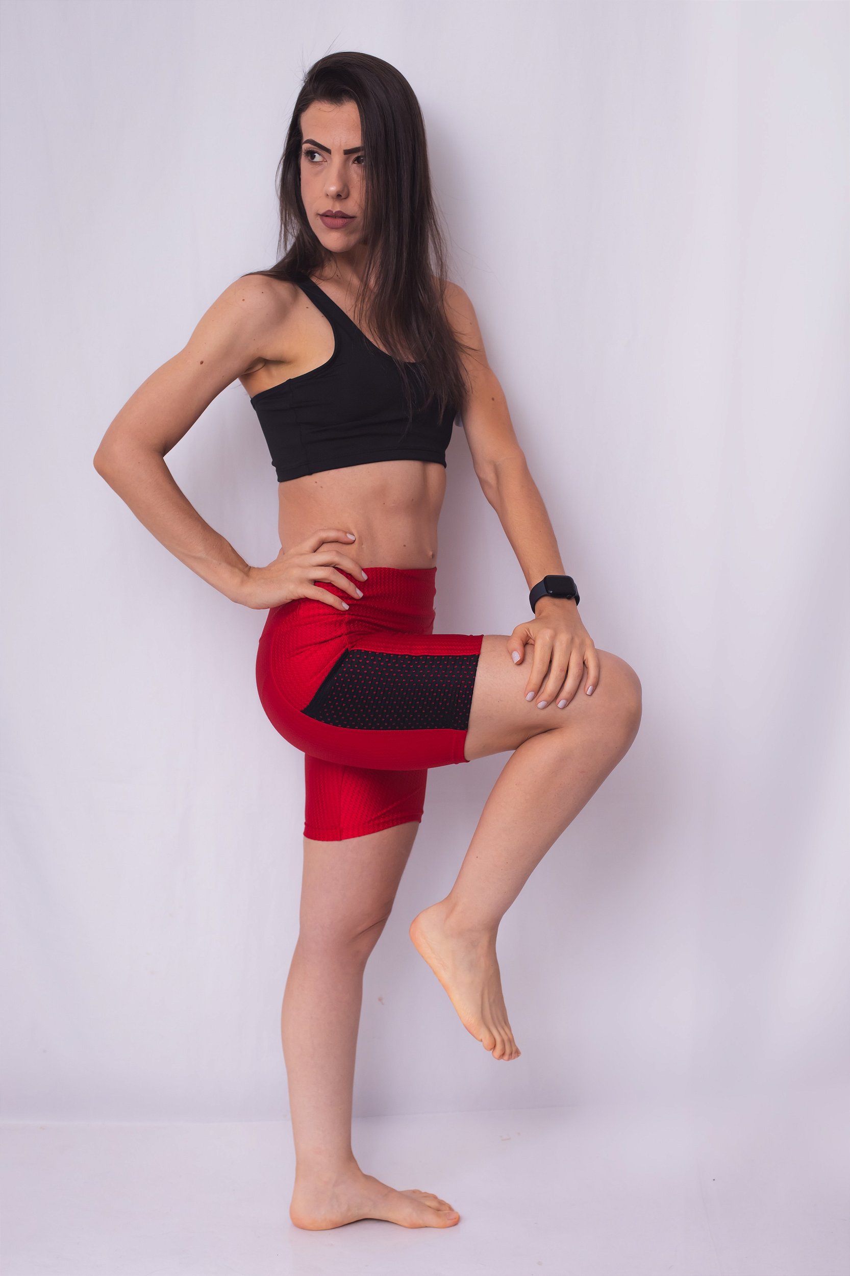 Bermuda confeccionada em tecido com toque leve e textura brilhante com bolsos laterais. Possui ótima compressão e cintura alta. Disponível apenas no M (modelagem pequena).