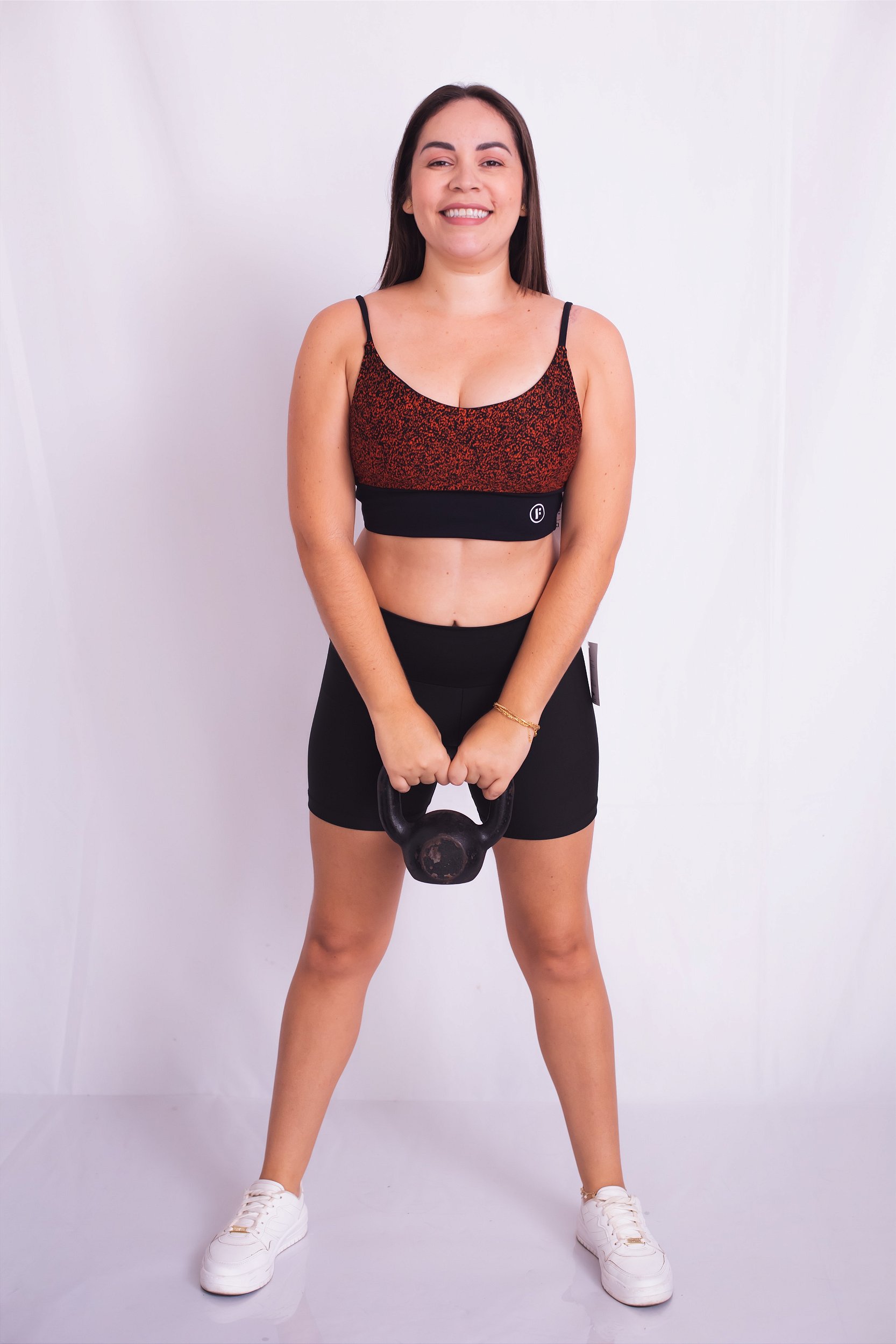 Top de alcinha com bojo (Removível) e alta sustentação. Alças confortáveis e faixa larga abaixo do seio para melhor sustentação e compressão. Disponível apenas no M.